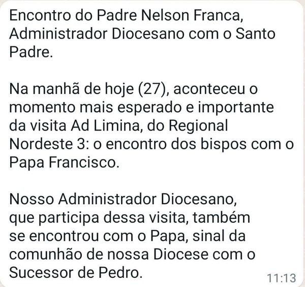 Mensagem do Padre Nelson Franca, nosso Administrador Diocesano, dirigida "ao querido povo da diocese de Amargosa", após a celebração na Basílica de Santa Maria Maior, em Roma.
